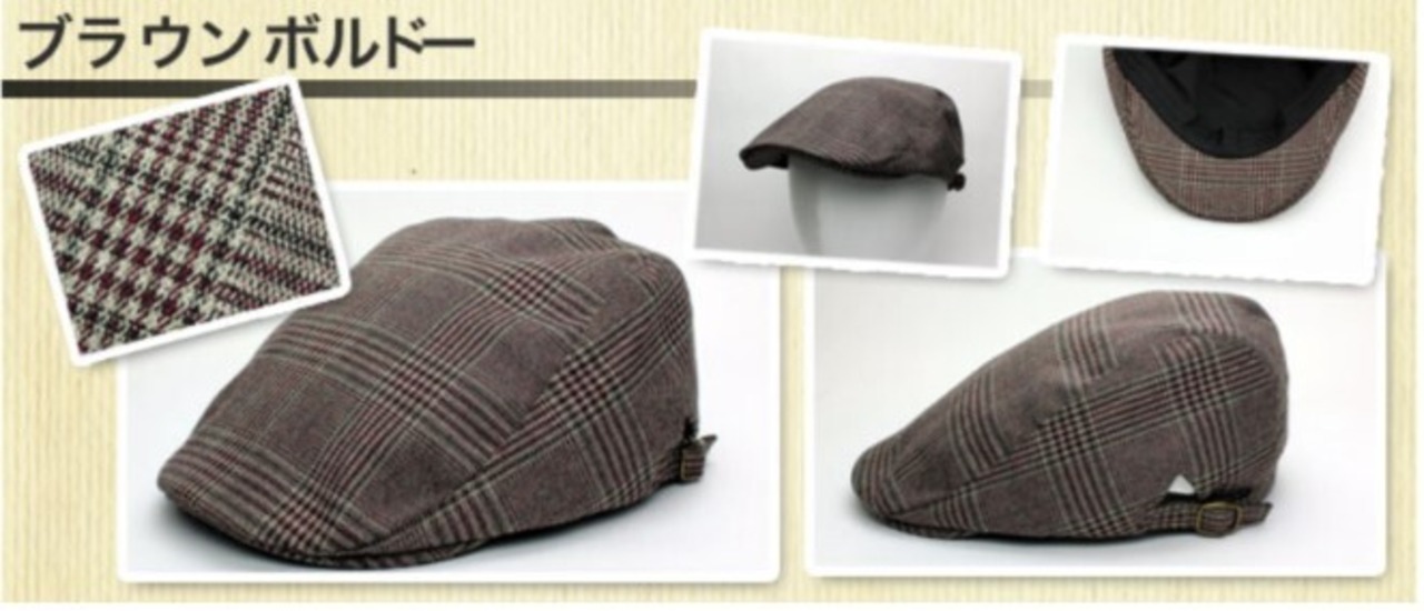 シックなグレンチェックの柄に、ボルドーなど様々な色を織り込まれ高級感のあるハンチング。
