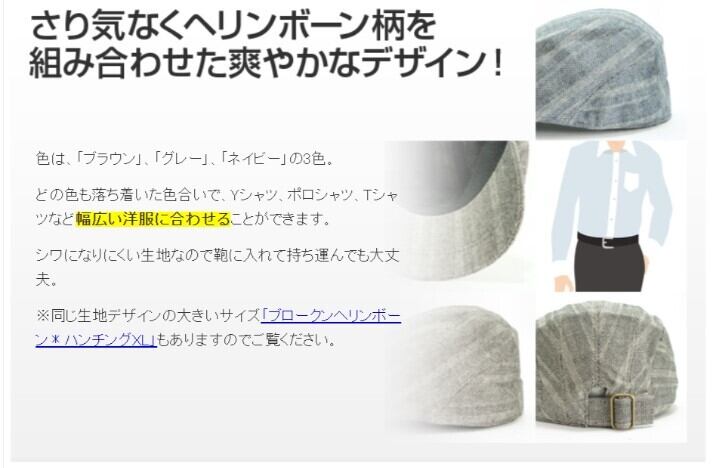 ツバ長タイプのハンチングはスポーティなイメージで、様々なコーディネートに使えてお出かけにとても便利。