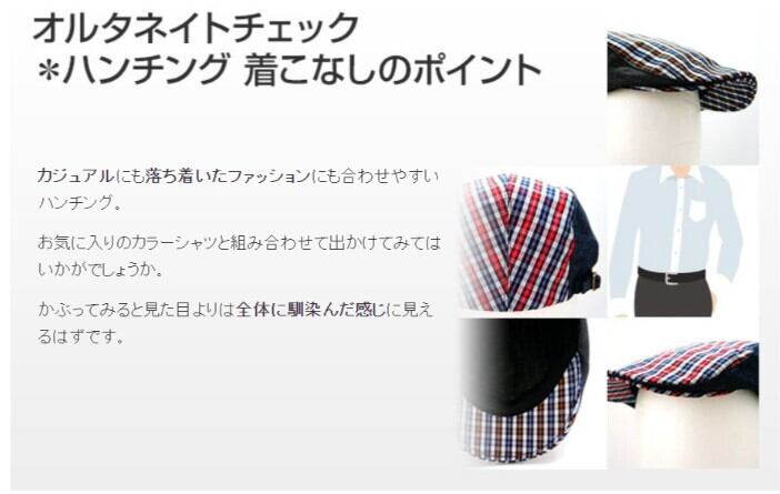 店長お気に入りのオルタネイトチェック柄のハンチング。